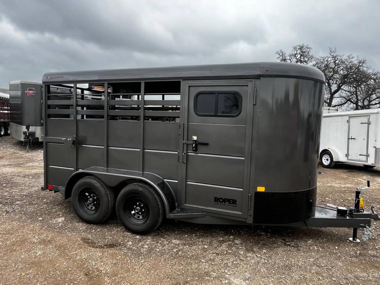 Brand New Goodguys Roper 2 horse slant bumper pull, 6’x14’ & 6’6” tall, 2-3500# electric brakes, walk in tack with saddle racks, 2”demco coupler latch, full swing half slide rear gate, full side access door, black out package, spare rack (spare additional if needed)