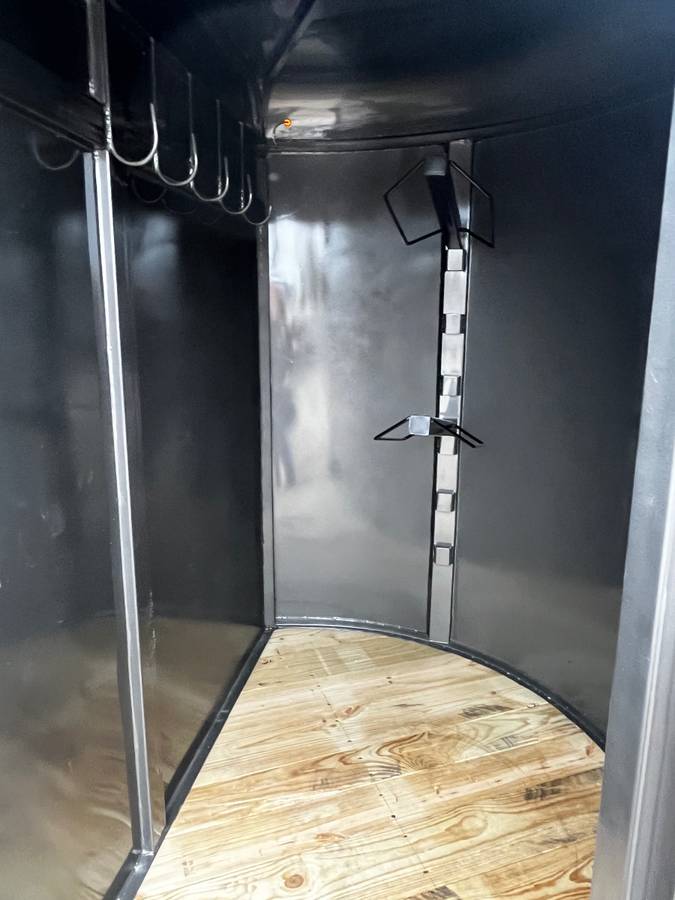 2025 WW 6’x16’x6’6” tall custom 3’ round nose storage for tack, feed, hay, show boxes ect. 2 tier removable saddle rack, walk in tack door, side access door to animals, full swing center gate, roughly 6’6” and 6’8” divided section, full swing half slide rear gate, 2/5200 # torsion brakes axles, treated floor.
