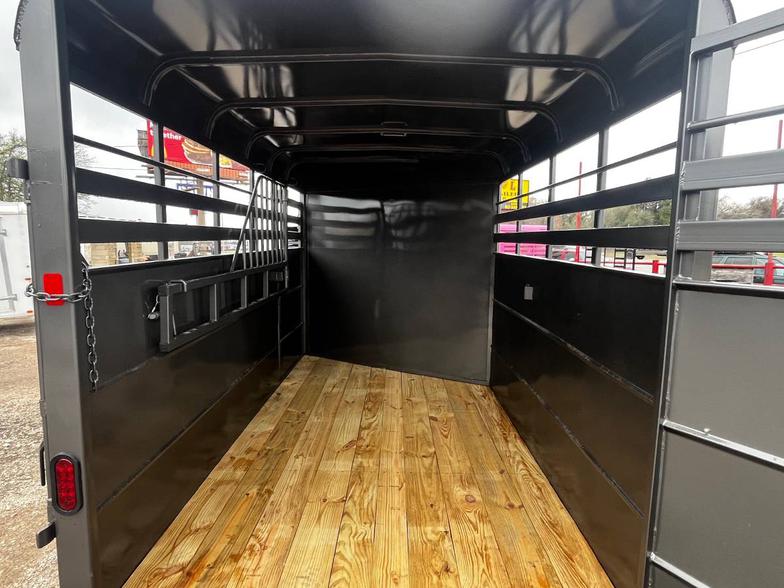 Brand New *2026* 5'x10' Bumper Livestock trailer, 6'6" tall, 2-3500# electric brake axles, full swing half slide rear door, 1/2 access door front, black out trim package, divider gate close to access door, treated wood floor, spare rack (spare additional if needed)