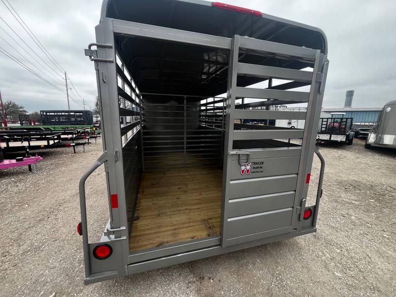 Brand New 2026 WW 5’x10’ & 6’2” tall allaround stock trailer, 2-3500# ezlube torsion brake axles, full swing half slide rear gate, 1/2 side access door, gravel guards, DOES NOT HAVE A CENTER GATE…2” ram coupler, breakaway safety switch w/bettery, 225/75/15 tires on black wheels. spare tire extra if needed.